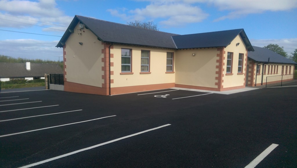 Approval was granted for the removal of the pre-fab and the building of a SEN room (16m.sq). A car park with 9 designated parking bays as well as a disability parking space was developed and a new electronic gate was fitted at the new entrance. The Dept. of Education provided most of the funding for this work. The work was completed in August and the new room was furnished and occupied in early September.